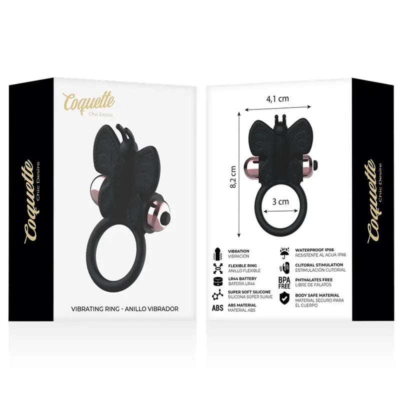 COQUETTE CHIC DESIRE - COCKRING BUTTERFLY WITH VIBRATOR BLACK/GOLD