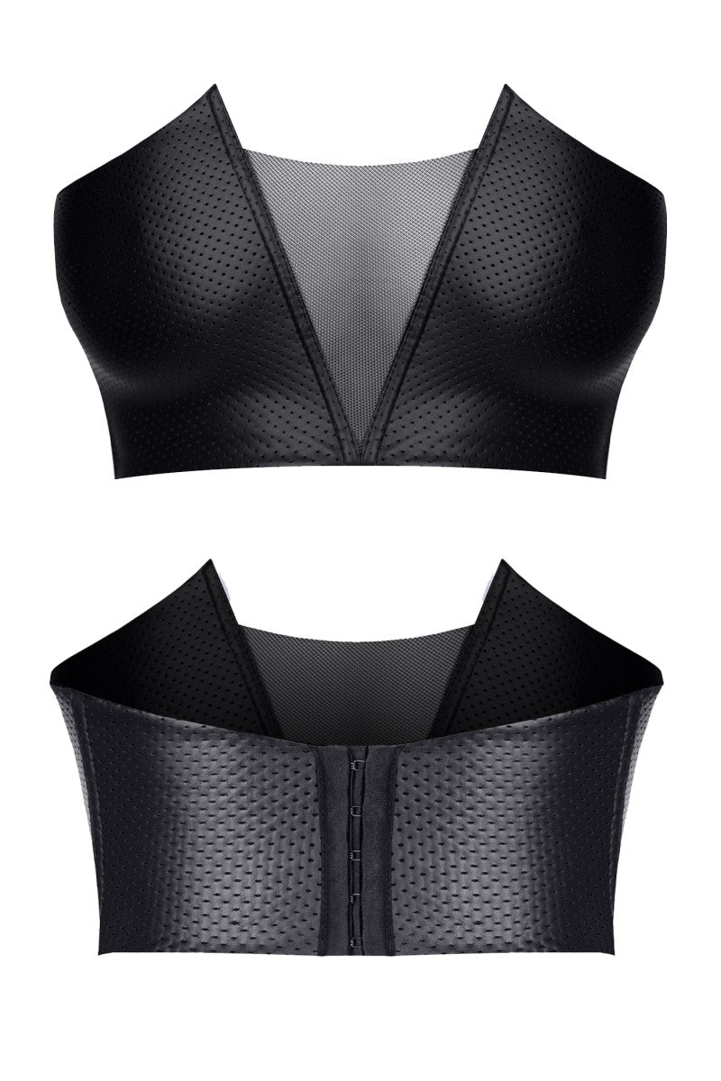 Top in captivating faux leather with pinhole detailing. Accentuates and beautifully accentuates the décolletage. Adjustable 2-stage comfort closure at the back. Read more