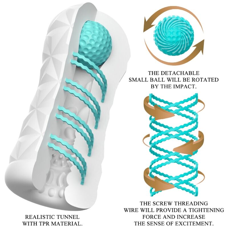 A small tool for gigantic masturbation fun! This transparent and reusable masturbator features a rotating spiral and a stimulating ball on the side. The rotating spiral makes the masturbator rotate during penetration, and the ball on top can stimulate the right spot and give you a new sensation. The sleeve has a stimulating and arousing texture inside that massages the penis intensely and dynamically during manual stimulation. You can use this stylish, skin-friendly masturbator again and again. Very easy to use and pure pleasure!