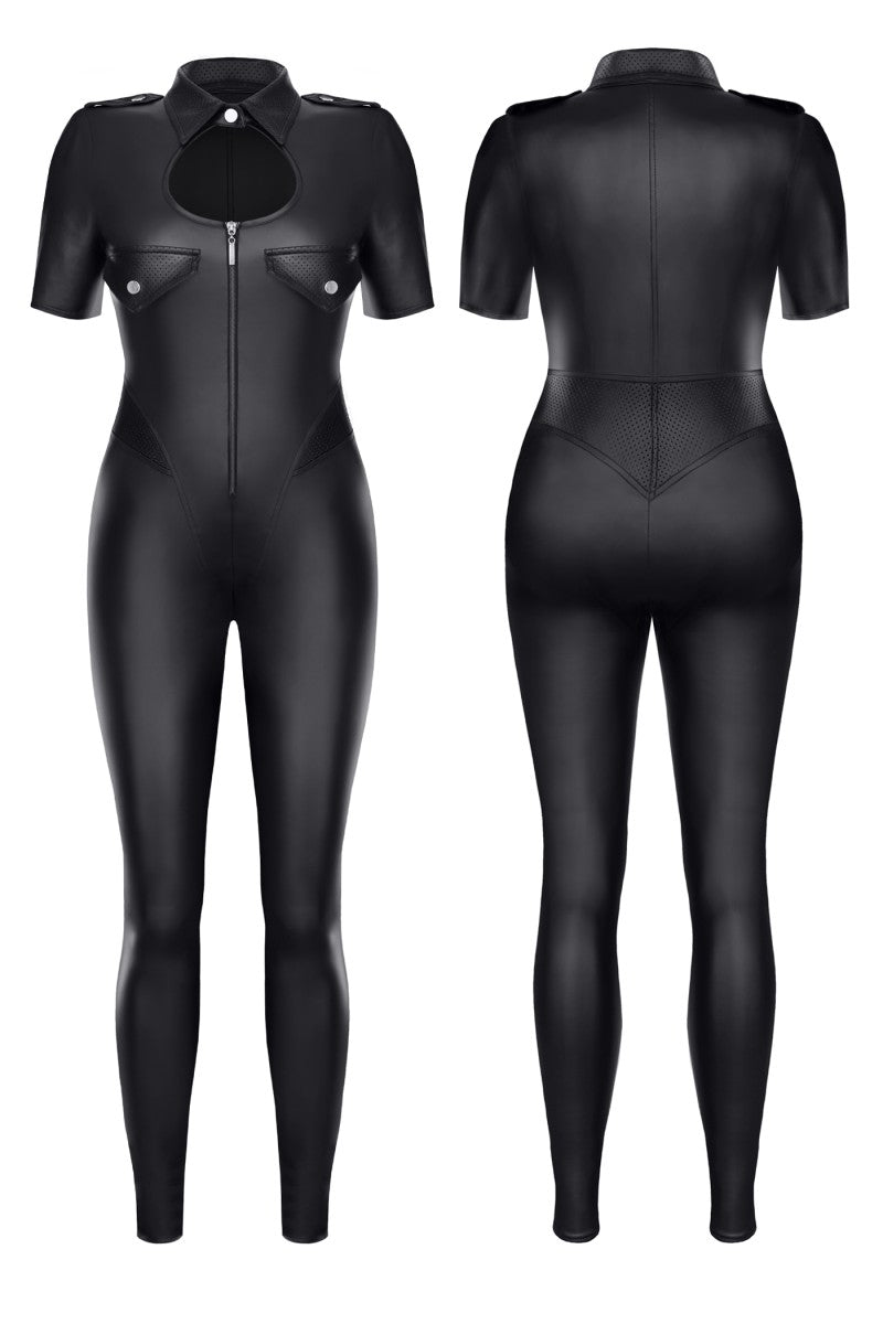 Ein atemberaubend spektakulärer Ganzkörper-Catsuit im Uniform-Stil. Es zeichnet sich durch viele sehr durchdachte Features aus, die es so unglaublich sexy machen. Es ist komplett aus 360-Grad-Wetlook gefertigt, passt sich also perfekt an und betont wunderbar die Vorzüge des Körpers – Dekolleté, Taille, Rundungen der Hüfte, Form der Beine. Die einheitlichen Stilelemente werden durch raffinierte Details hervorgehoben: Aufnäher auf den Brusttaschen, Schulterklappen an Schultern und Ärmeln, ein verstärkter Kragen. Die Vorderseite verfügt außerdem über einen Rundhalsausschnitt auf der Brust, der das Dekolleté sinnlich in Szene setzt. Bemerkenswert ist auch der vertikale Zierreißverschluss, der das Demoniq-Logo auf dem Reißverschluss trägt. An der Taille vorne und hinten befinden sich Wetlook-Stoffeinsätze mit Nadellöchern, die sowohl vorne als auch hinten die Hüfte und den Po attraktiv formen. Der Catsuit wurde sorgfältig entworfen, um so bequem wie möglich zu sein, aber vor allem, um alle Vorzüge der Figur intensiv zu betonen, mit besonderem Augenmerk auf Brüste, Taille, Hüfte und Gesäß. Ein Must-Have für jeden Fetischisten, der Wert auf Qualität, Komfort und einen außergewöhnlichen, edlen Look legt. Modell auf dem Foto: 164 cm groß. Produktgröße: S Der Artikel ist in einer hochglanz Box mit Bild verpackt. Pflegehinweis : 30Grad Handwäsche Farbe : schwarz Material : 95% Polyester / 5% Elasthan erhältliche Größen : S, M, L, XL, XXL