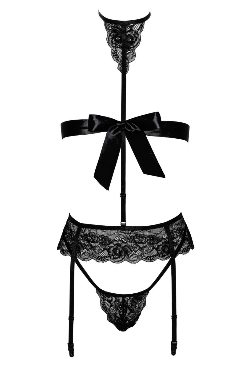 4-teiliges Set, gefertigt aus dehnbarer Spitze und Gummibändern.