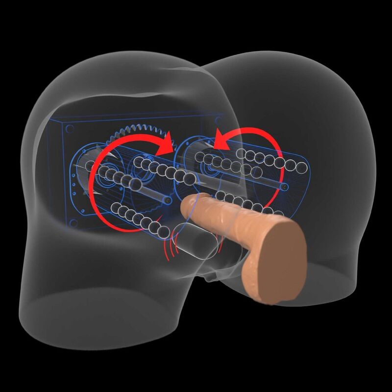 - Motores giratorios dobles: Cada nalgas cuenta con un potente motor giratorio, ¡así que tu pene recibe un masaje por ambos lados simultáneamente! Cada motor se alimenta mediante un adaptador de 24 V y proporciona una potencia de masaje sin precedentes que dejará tu pene seco.