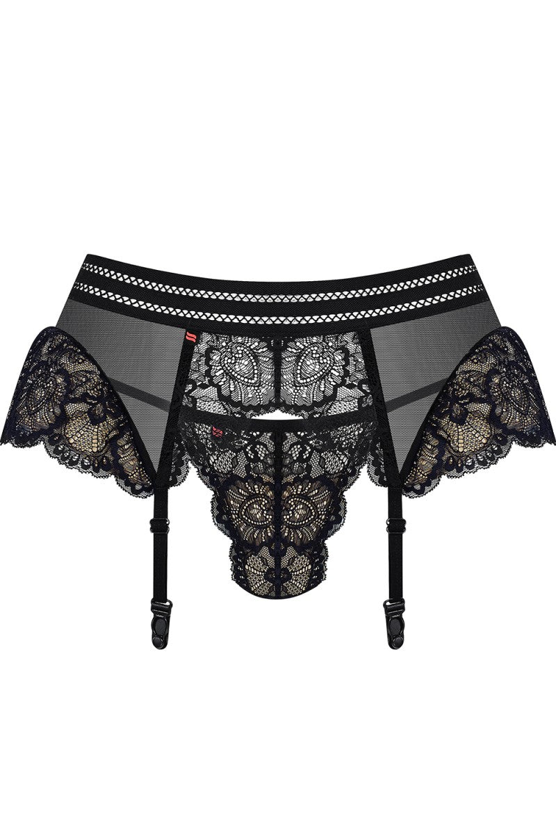 853-GAR-1 Strumpfhaltergürtel + T-String schwarz von Obsessive