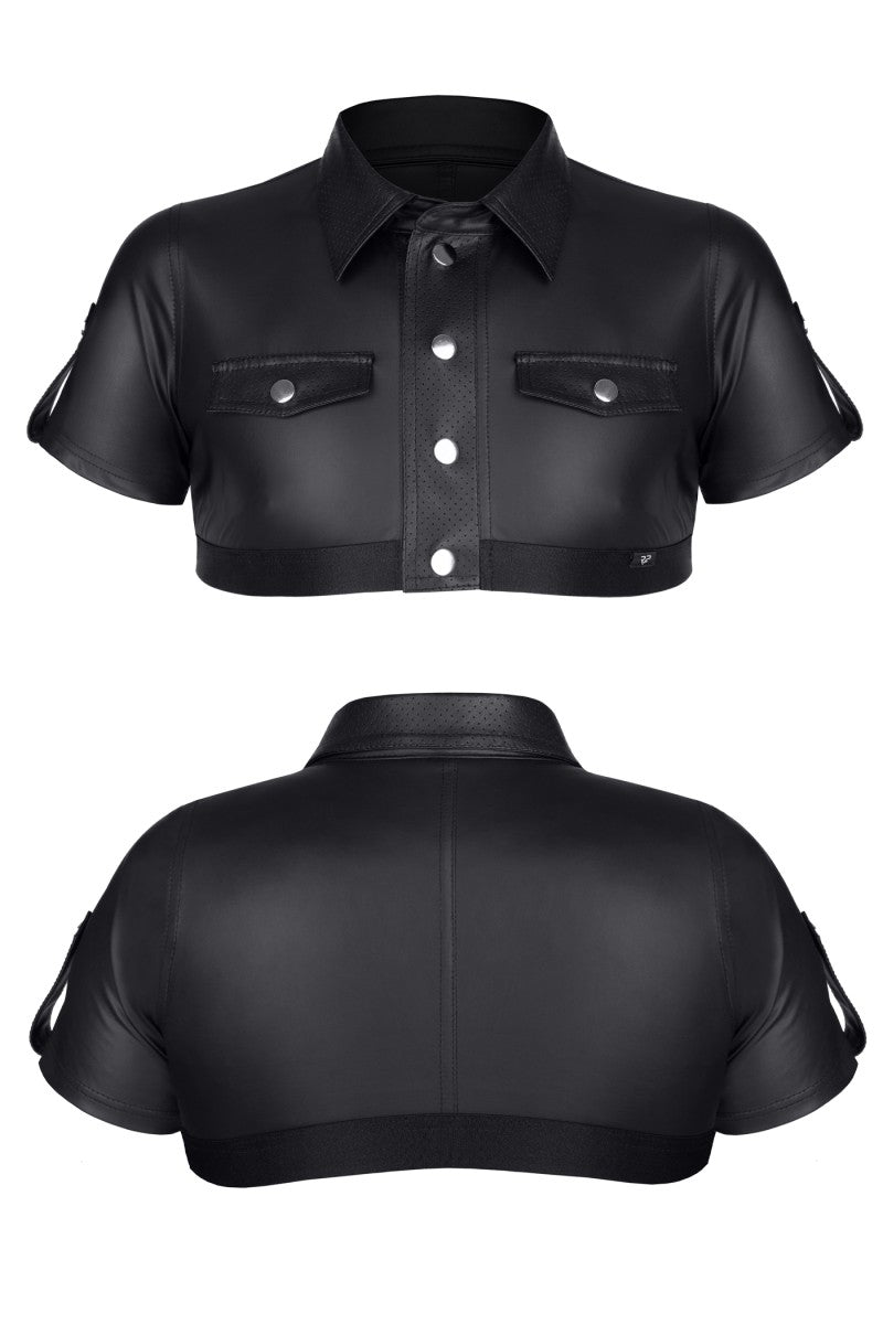 Crop Top im Military-Stil. Mit silberfarbenen Metallnieten befestigt.